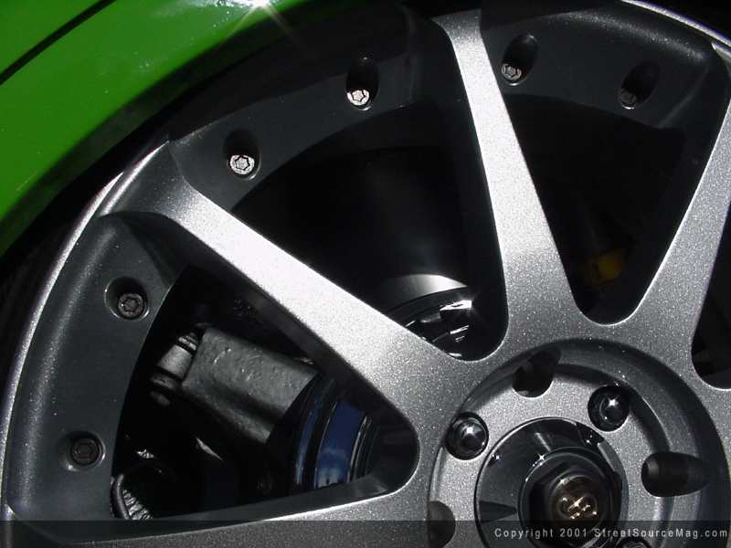 To bring Jason's Import to a respectable level, the decision was final that the use of Chassis Tech coil-overs would no longer be needed and the use of something adjustable from the interior confines would become a must.  So reaching his goals, Jason bolted up a set of Air Cylinders ran with 3/8 line to a 5 gallon air tank. After adding the new suspension, the factory rear brake drums where sent off to be chromed and steel braided brake lines where installed.
