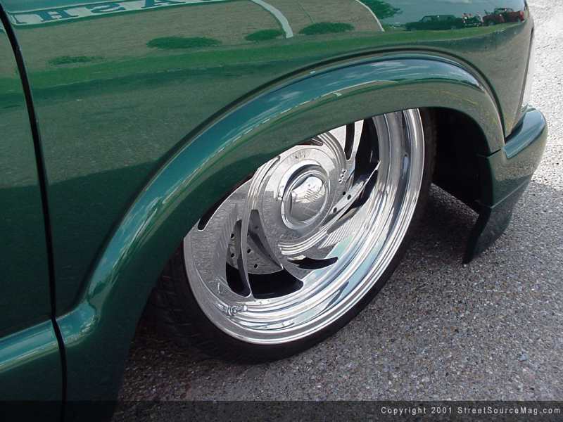 Jason looked high and low in choosing a set of rolling attire that would compliment the work that went into the process of building his truck. After the search was over, Jason chose Billet Specialties Psycho in the 18x9" fashion front and rear, then wrapped them in Pirelli P7000 215-35-18 rubber.