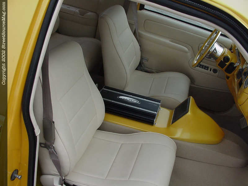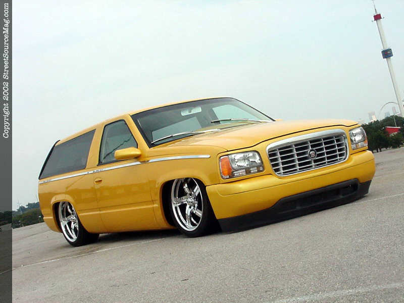 With the newfound low, the rear floor section was cut and raised 7 inches so the gas tank could be raise and the Tahoe could sit a little lower. With a nice added touch, they would install three train horns to make sure everyone knew you were coming.  It was now time to work miracles with the interior. Starting with the Dash, it would be smoothed out and painted to match the exterior along with having the headliner wrapped in tweed along with the floor of the Tahoe.