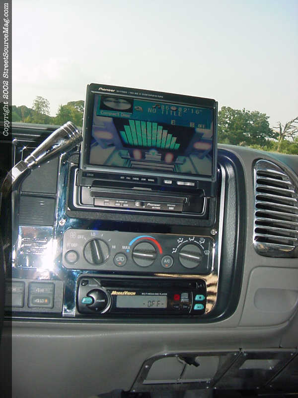 Needing tunes, Chase would install a Pioneer 8000 screen along with JL Evolution mids and tweets for highs and four Rockford Fosgate 12's for bass.  Pushing the system would be a set of Rockford amplifiers, 800(2) and 250(2). Now needing video, Chase would have a Mobile Vision DVD player, molded VCR and 2 Phoenix Gold caps. Performance Audio of Tyler, TX, is responsible for the wiring.