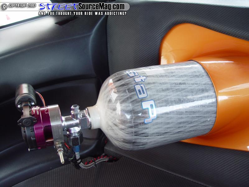 A set of VeilSide Titanium Pedals matches the shifter nicely. The new found console also is found featuring Ignited Tec 5 Compass (Canada only), Ignited Nitrous switches (LED style), Ignited Skyline style kill switch, and an Original design Ignited engine start button in red.