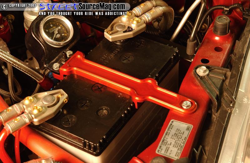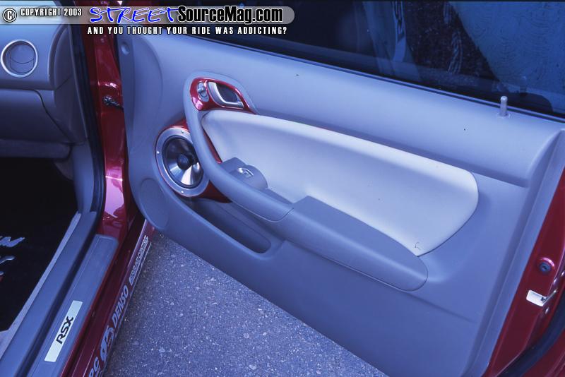 Helping to keep the power to the ground would be an Advanced Clutch Technologies organic street disc with an ACT Xtreme pressure plate and Mugen limited slip differential; all provided by King Motorsports. Denso Iridium spark plugs and MSD Ignition components help give the engine spark while Thermal Flex silicone hoses help provide proper vacuum. With all the modifications made this RSX is pushing 265 HP at the wheels and an 80-shot NOS, not to bad.