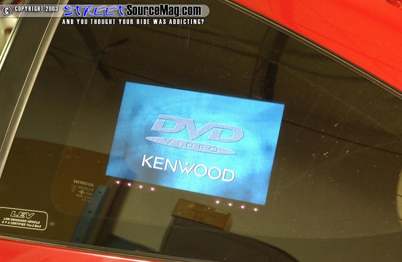 With the Kenwood head unit in place, and the audio running strong it was time to deal with other electronically components. For starters a Fahrenheit AVIR-3 video switching unit would be installed. Next, One Icon-TV 9" monitor (F90WIR) modified to fit in each rear quarter panel window would be put in place along with one Icon-TV rear view mirror with 2.5" LCD screen (RVCAM).   Feeling that wasn't enough video, One Icon-TV 5" LCD screen (LM500) would be placed into each side mirror. Finishing off the video, One 7" Icon-TV monitor (W-7000M) would be mounted in a custom "bridge" that hovers over the woofer enclosure. The bridge is made of MDF, fleece, resin, and fiberglass matting.