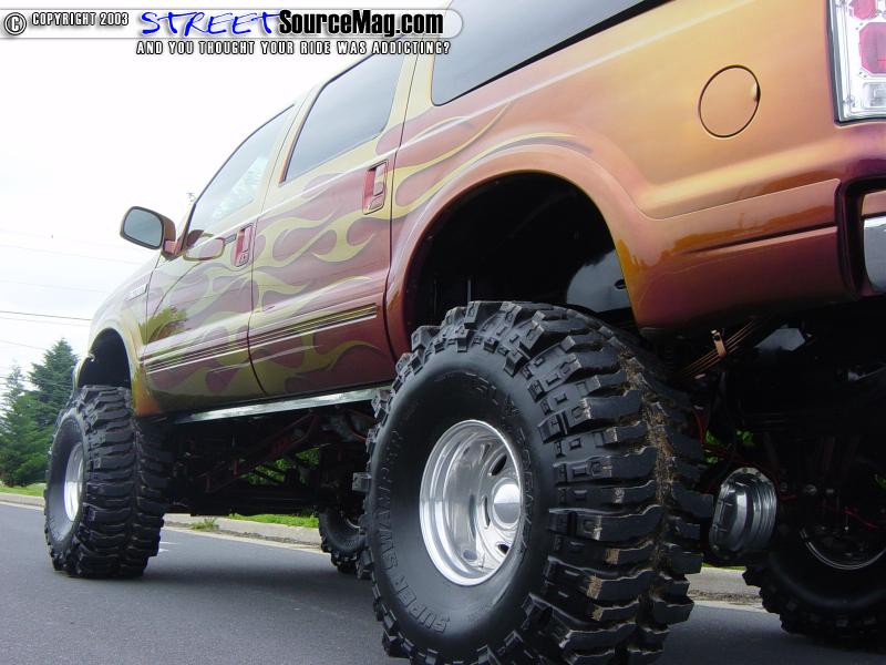 Now for what sets this truck apart from all the other Excursions on the road, the suspension. Deciding that the stock suspension wasn't good enough, Paul opted for a 13" suspension lift. This along with the 44" Super Swamper Boggers mounted on a set of 16.5x12 Weld Outback's provided some serious lift for the Excursion.