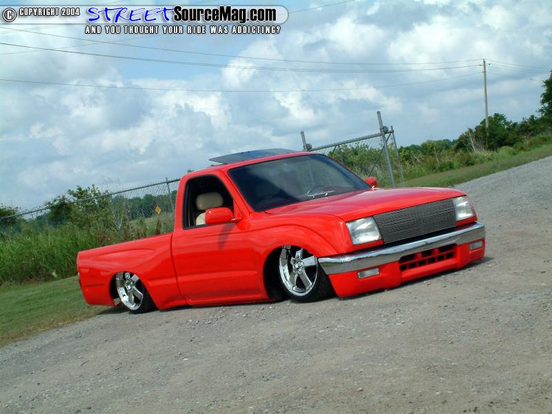 The gas filler door would then be shaved and moved into the bed while a set of Dimondback headlights would be bolted up along with APC Kandy red taillights. Trailer fenders would take place of the stock wheel tubs while the rest of the bed would be smoothed out and a ragtop cut and placed into the roof. Jamey would handle some of the bodywork while Don Bracken would help and finish the majority of the work.