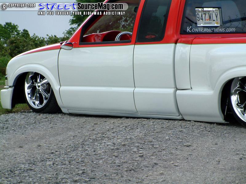 A sliding rag would then be cut into the roof while a set of Harley Davidson mirrors replace the shaved mirrors. Finishing off the custom bodywork, Jason would then have the rain gutters and third brake light shaved for the overall smooth appeal. Professional Restoration and Collision would perform a lot of the bodywork along with Jason assisting in the process. With the bodywork complete Jason would then have the crew at Professional Restoration and Collision lay down the Viper red and pearl white two-tone paint.