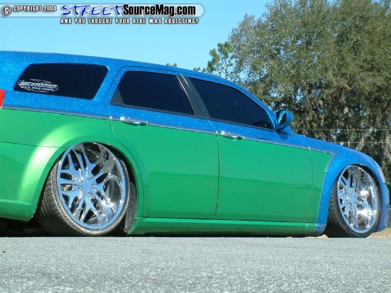 Keeping things rolling in the custom appearance Kris would turn to John once again for his paint expertise. This time around Kris would use an F22 HOK Royal Blue metal flake and lime time green two-tone design.