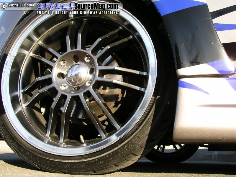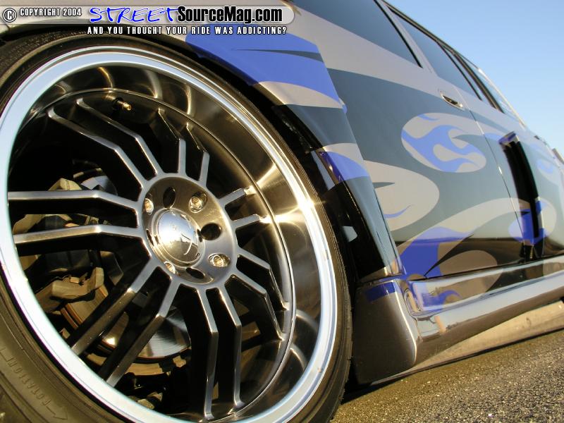 With the body work set right it would now be time to get the wide body fenders to tuck the 18” Jaz wheels wrapped in 215/40 Dunlop rubber. To accomplish this feat Rey would install air bags at all 4 corners ran off of 7 switches for some front, back, side to side, and independent wheel movement.