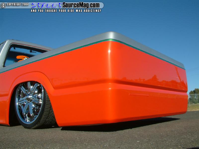 Then next aspect of the build up would be the exterior of Shawn’s B2200. Getting moving Shawn would have a fully shaved Grant Kustoms Cali-combo and front bumper. Next the bed would be sheet-metaled in leaving a smooth inside along with an S10 gas door molded into the floor.