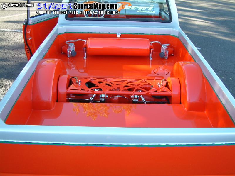 Next the cab pillars would be shaved along with the doors being notched to match the new cab pillar contour. The mirrors would then be shaved along with the inner door lock, all seams, corner markers and cowl. Once the bodywork was complete the Mazda would be sprayed with HOK orange and silver paint two-tone paint job.