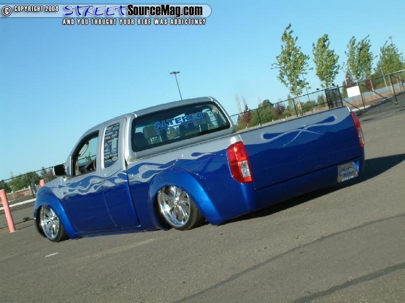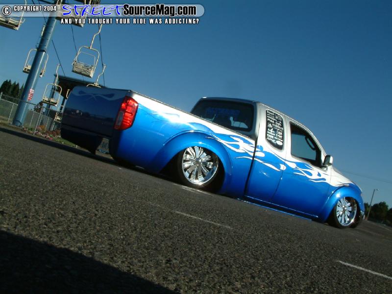 Getting things moving forward Ron would turn to Tom from Dawg House Kustoms (DHK) of Portland, OR for his expertise. Once in Tom’s possession the Frontier would be stock floor body dropped 3 inches. With the front frame z’d 3 inches at the firewall and step notched out back, Tom would be ready to install many air ride items.