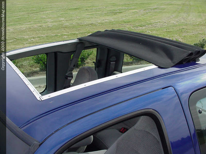 To handle the body modifications that Dave had in mind, RAW (Rhodes Auto Works) in Sanford, Florida was contacted and put in charge. In front, a 2000 Ford bumper was put in place along with a Trenz billet insert. In the rear, a Sir Michael’s steel rollpan was welded in place to smooth things out. The roof of Dave’s Ford was cut out and a huge sliding ragtop was installed. The whole truck remained the stock color, which is Moonlight Blue.