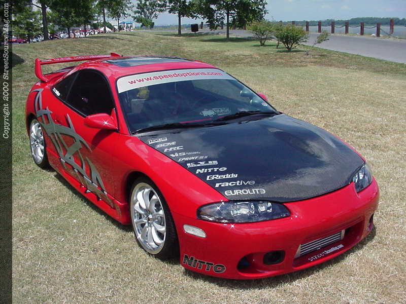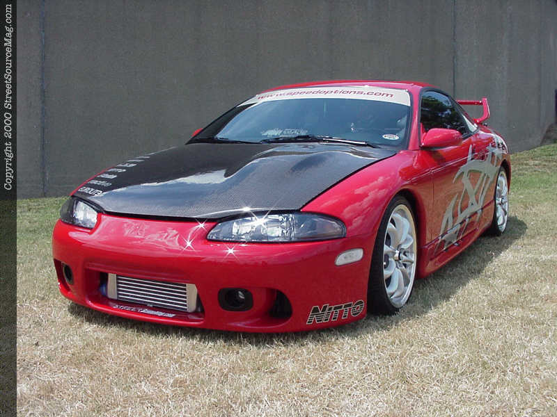 | The use of Toucan Industries coilovers along with KYB 5-way adjustable struts gives Coby’s Eclipse the extra low and handling ability. | To keep tight to the pavement, Coby chose a set of wheels to roll on. Quantum Tek 18x7 ½ alloys were bolted on utilizing Nitto 215-35-18 rubber front and rear.