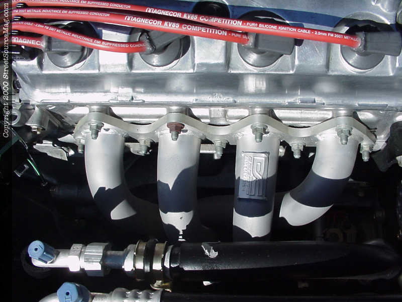 To roll the civic around, Angi went with a set of chrome ICW 17” wheels wrapped in 205x40 rubber. Since the import scene is big on speed, Angi knew she wouldn’t be able to leave the engine alone. So to move the civic down the road it was time to hook up the engine. With this in mind many add-ons were required. To get things started AEM adjustable cam gears were installed. To get the air flowing, the decision was to go with DC Sports 2 1/4 –inch cat back system along with a DC Sports Header.