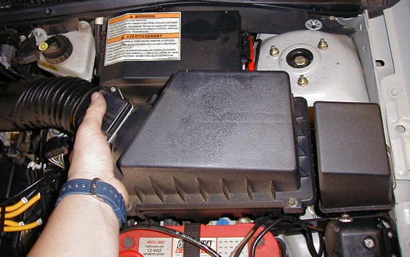 Step 3: Remove the hose that goes from the airbox to the valve cover. Its tricky to do, but play with it a bit and it will come off. Step 4: Pull out the stock airbox assembly. It is held in place by rubber mounts so it just pulls out with a touch of force.