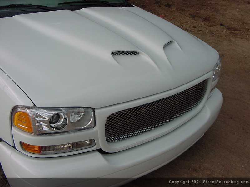 When Craig first purchased his Yukon he knew what needed to be done with it, why else would he finish it in 4 months? First off Craig swapped the plain stock hood for a fiberglass ram-air hood made by Good Hood and a custom-made chrome speed grill insert. While Craig was swapping the hoods he removed the grill shell and painted it and slapped in a matching chrome speed grill moving away from the stock look.