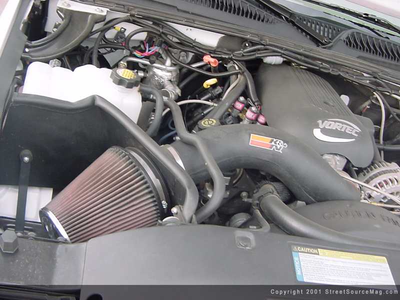 20x9 Detadas all the way around with BFG rubbers were slapped on to give the Bling Bling appearance. Moving to the engine Craig pretty much left the "stock" look, but added a cool 150 shot of nitrous to amaze the speed freaks. Along with the nitrous Craig added a K&N generation 2 power aid and throttle body spacer to boost the horsepower up a hair.