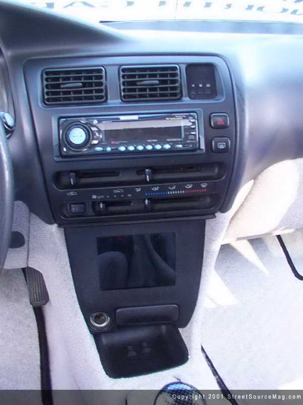 The factory gauges are accented by the addition of white indiglow gauge faces. To make things different, Terence extended the shifter 2.5" because as he puts it… "short shifters are played out and it's not a race car!" Terence did all of the interior work with the help of his friend, Scott Boyd from Competition Audio.   Now that he had his interior to the point he wanted it to be, it was time to put a stereo system back in the car. This time around Terence decided to go with something simple.