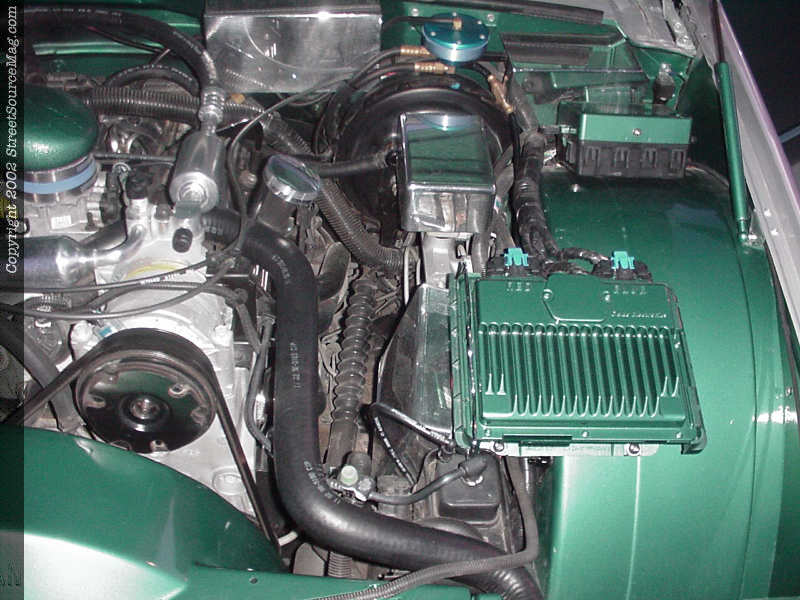The Engine has been equipped with a Powerdyne Supercharger for added horse power along with painting and chroming many items for the show scene. To help out the engine with the newly found supercharger, Gianni also installed a Gibson exhaust system along with a set of headers.