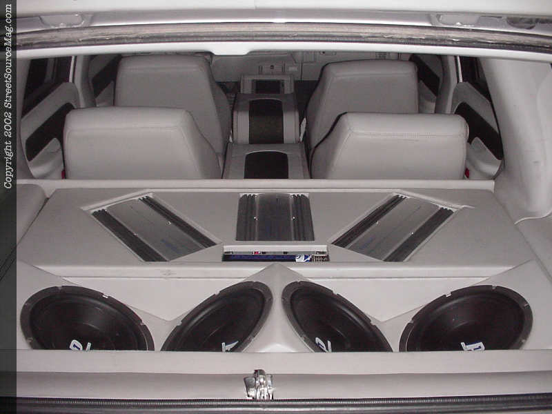 When asked about the current stereo found within, Gianni answered, "It's all hooked up by Crossfire, I couldn't even really tell you. It has 4 12-inch Crossfire subs, 3 amplifiers, TV's and a DVD player, etc, as long as my employees are entertained on their way to work that's all that matters."