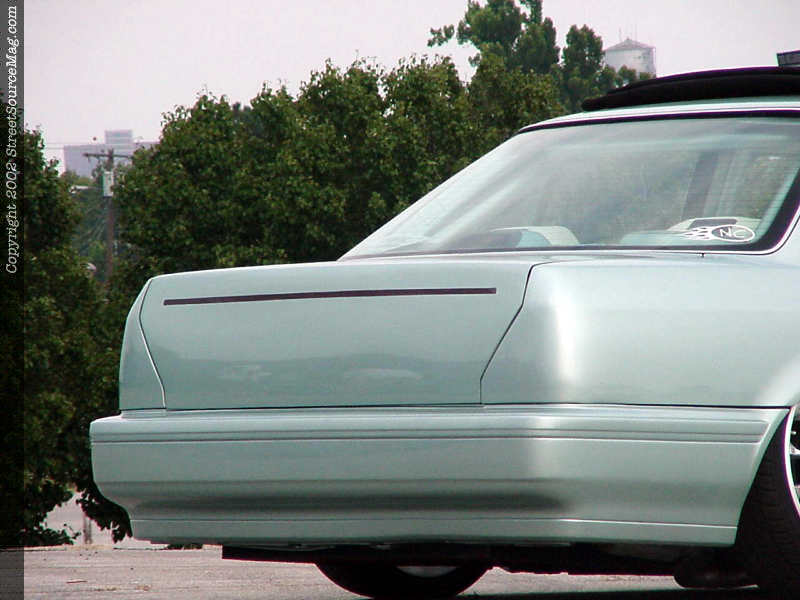 With the ride height at a nice level it was time to hit up the exterior. Starting up front the marker lights would be shaved along with shaving the door handles.  The gas filler door would then be shaved and relocated into the trunk. The taillights where shaved out and replaced with 48-inches of LED's. Finally the bodyline would be shaved along with the antenna, hood squirters and license plate box. Body work done by Jeff Phifer of Memphis, TN.