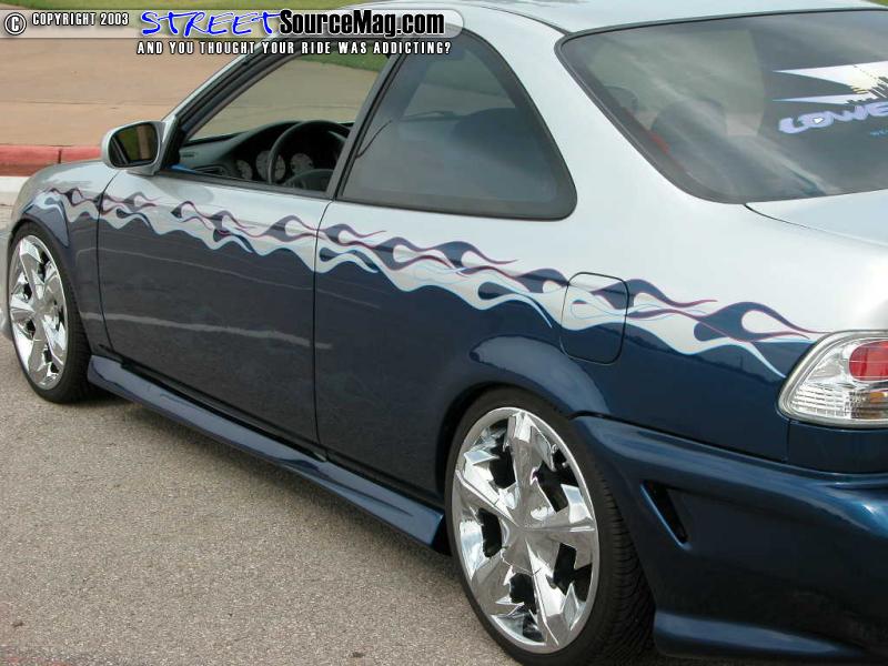 For the past four years Doug has spent his time in the scene gawking as most of us do at some crazy rides and beautiful women. Something a long time ago gave him a warm fuzzy feeling down south that his solution for getting to his piece of the pie was to grab everyone else's attention. So Doug set out on his greedy journey with a 1997 Honda Civic. Of course, not just any daily driver would turn Barbie's head so he had to lube up things a little on his own.