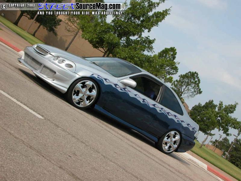 Now, Doug didn't care for the natural headlights, which is why he upgraded to the APC after market headlights and taillights for a perkier look. Then, turning to the crew and Jason Hughes at Street Dreams in Tulsa, Oklahoma, the Civic was given a finish of mesmerizing Lexus blue paint accented with blue and purple tribal flames. To complete the transformation he also continued the blue and purples throughout the tweed interior. With that kind of nip and tuck, it was time to give the ride a few more helpful mods to ensure it was everything Doug had had hoped it to be.
