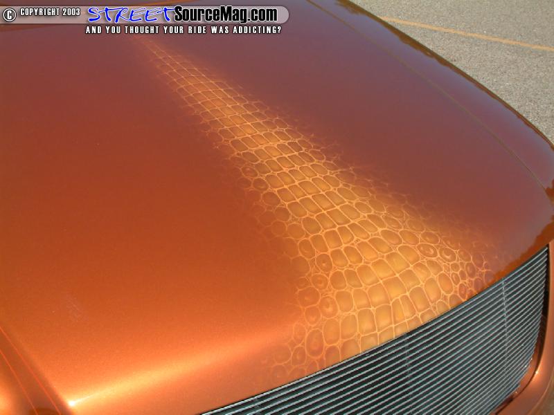 With the exterior prepped and ready for paint David would take it to Todd Fisher of Deland, FL for his paint expertise. Todd would pull out many House of Kolor paints to complete the look David was envisioning. Cinnamon pearl would be the base color along with Sunset, Tangelo, Chrome yellow and lime green in the form of some killer graphics.