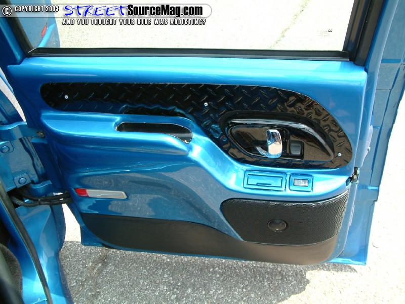 With the exterior complete it was time to turn all attention to Duck's interior needs. The dash would first be smoothed out and painted along with the door panels and other interior pieces.   Diamond plate can also be found in the door panels to help break things up. The headliner would then be wrapped in leather. The stock seats would be moved out and in their place a set of Rative Racing seats would find their way in front and rear.