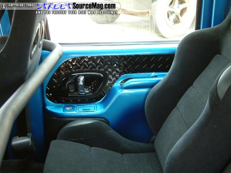 A Colorado Custom chromed and painted steering wheel would then be installed along with a Trenz rearview mirror. Giving the cab some structure would be a 1-ΒΌ inch roll cage that is completely removable.