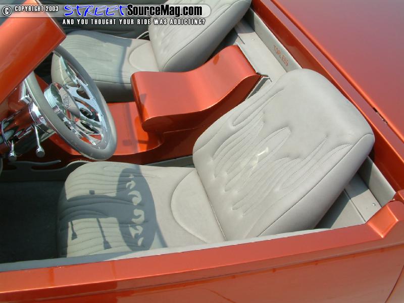The doors would then be found with leather inserts and smoothed. Autometer gauges would replace the stock cluster while a set of Pontiac Grand Am seats wrapped in gray leather replace the stock bench.