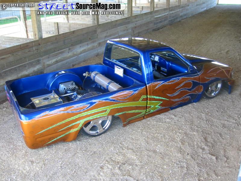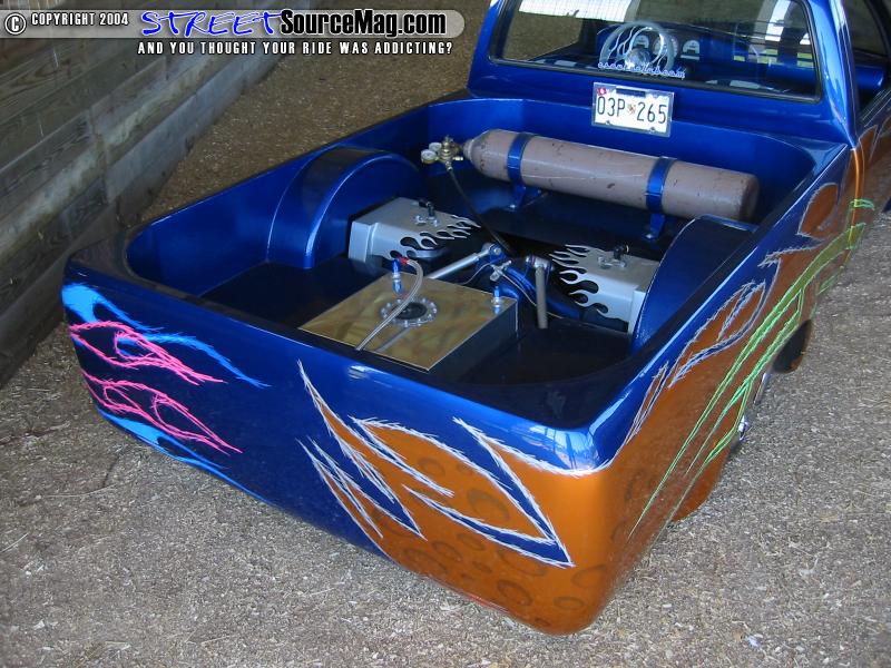 To finish it off a 10 gallon aluminum gas tank was placed inside the bed. An 11 bar billet grille inside a 4Runner shell would be installed next, along with H4 diamond cut headlights. To give the cab the finished look he was going for Showdown Accessories 2 ½” cowl hood was slapped on to be one of the few bolt on items on this truck.