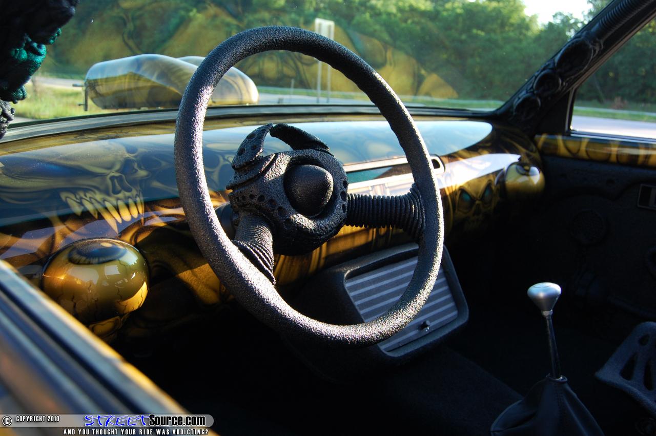 I know many of us love getting online here at Street Source and checking out our favorite profiles or build threads to see what people have been up to. What is Joe working on this week and so on. Most of us have posted our builds somewhere on the internet. Every now and then, however, a truck just shows up out of thin air and takes the scene by complete surprise. It’s so hard to keep something quiet with camera phones and apps but Kyle Osborn of Harrisonville, MO has done just that. With the help of some trusted friends, Kyle sold his soul and spent six years building his vision under everyone's radar. Starting its life as a regular cab Toyota, this 1994 pickup has been transformed into an extended cab long bed. Wanting to body drop this very long mini-truck, Kyle contacted his good friend Kyle Dimetroff of Guilty By Design in Joplin, MO, and the two built a frame to drop the truck body 4 ½," putting the rockers on the ground. The frame also features stretched control arm mounts that double as the air tank for the suspension. Firestone air bags and a set of DJM spindles and 18" KMC Klutch wheels wrapped in Kumho tires finish off the suspension.