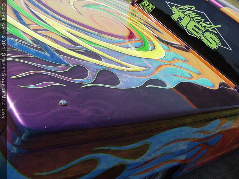 Now that the body was completed and ready for paint, it was time for Max to go crazy. With his own thoughts in hand, you can spend hours looking at all of the airbrush work on Tom’s truck. To throw people off, the paint scheme twist’s in the middle and throws out different graphics on opposite sides of the truck.