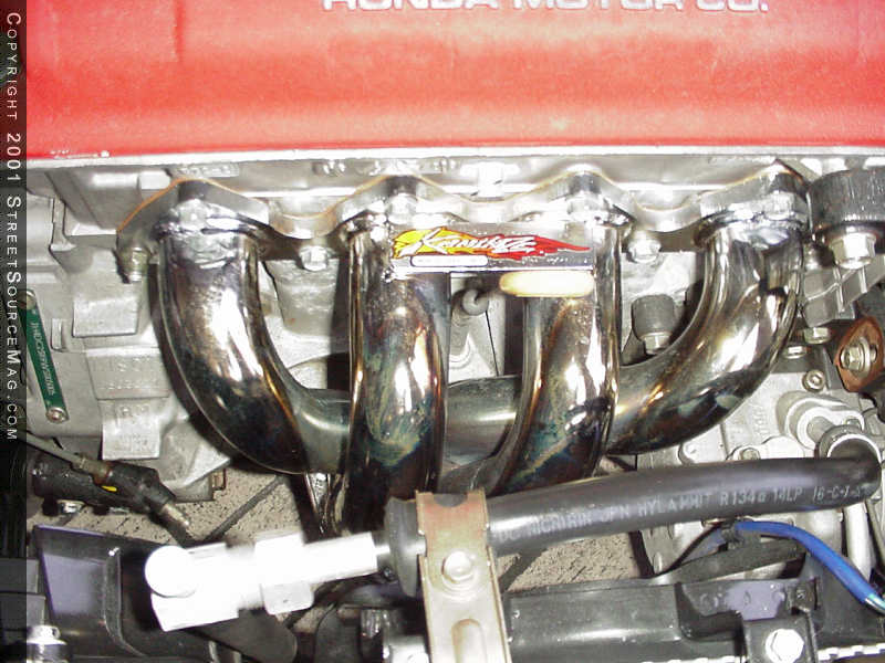 With the additions of adjustable cam gears Ryan would be able to help tune the engine for max power out of his Jackson Racing supercharger, which provides up to 8 PSI. With the help of Jesse Munoz installing the supercharger, the correct tuning for ultimate power was brought forth.  Now to help the engine breath, the choice was to bolt up a Kamikaze header, along with a Tanabe R Medallion stainless steel exhaust and muffler.