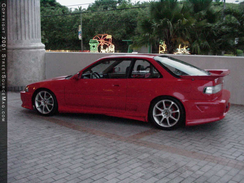 With the import scene, you must have killer suspension to handle a day at the drags or the mountain and coastal drives through wavy roads. In this department Chris made sure not to hold anything back, just like the rest of the car. The products of choice would be a set of Tokico shocks along with V-spec coil-overs to give the best ride possible. To help stiffen things up, a Suspension Techniques strut bar was installed. Now that he can dive in and out of corners, he must have some way of slowing down. In order to do this, slotted stainless steel rotors where installed along with Goodridge stainless steel brake lines.