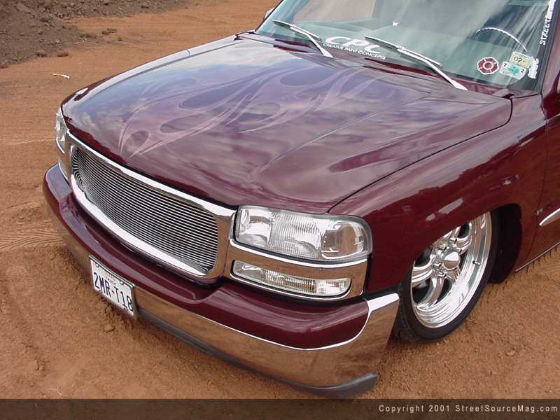 In March of 2000, after dropping down a cool $30,000 to purchase his step-side and to please the powers that be, it took 9 short months to complete and run wild on the show fields. With the words of prayer and help from the lord, Shawn would find the build up a smooth one. Knowing that the clean smooth look Shawn had in mind, many items would be color matched instead of removed to keep things a little different then what people were used to seeing. After pulling off the front bumper cover along with the door handles they would then be prepped and color matched Dupont Toreador red along with the inner wheel wells.