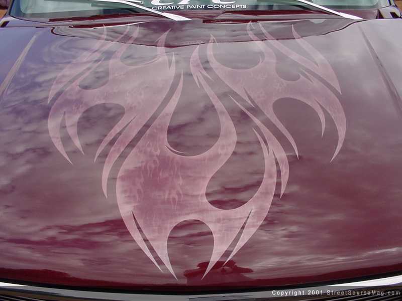 Finishing off the bed, Shawn would install a set of billet step-side plates. Creative Paint concepts of Groesbeck would be responsible for the body modifications. With the current list of body changes completed, Shawn would then turn to Luis Chapa of Mixia, Texas for his paint expertise. While in Luis's hands, the step-side would be repainted along with receiving a set of tribal ghost flames to give an added custom touch.
