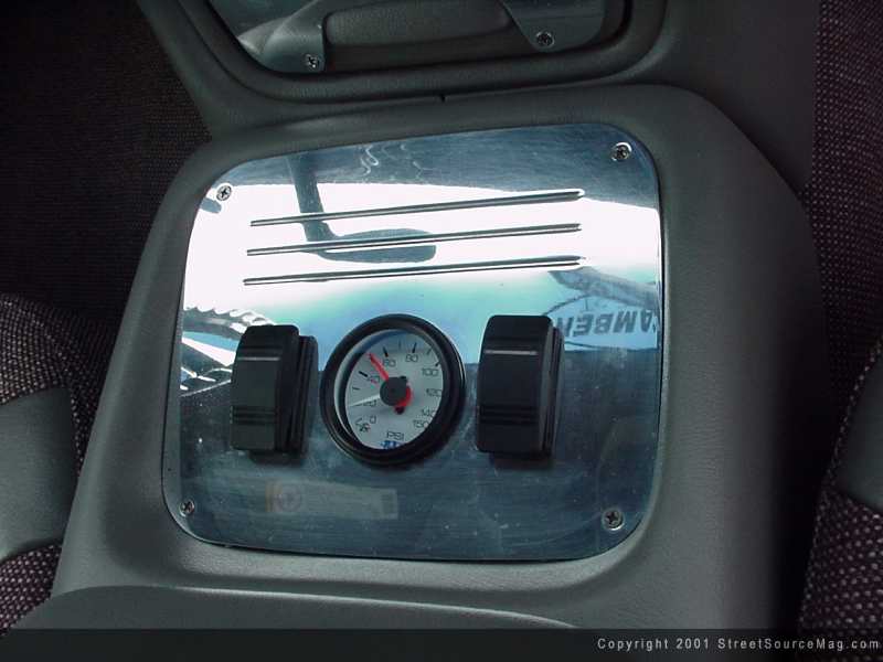 With the air-ride gauges being covered in billet along with the control panel, that would leave only the flamed billet mirror to be named. To accompany the array of billet in the interior, a Weld CTX 01 steering wheel would be installed.