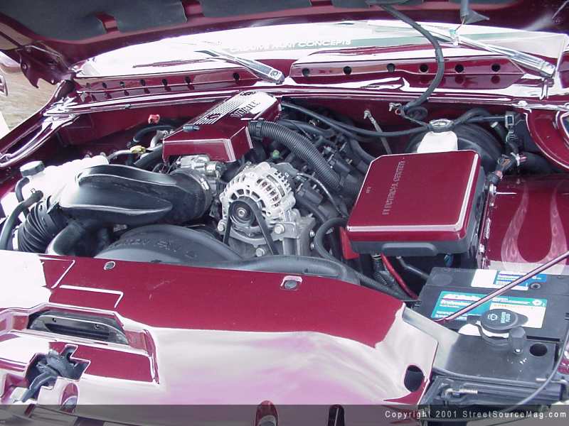 Helping cosmetics, many items found under the hood where painted to match the exterior of the ride. All four wheels are equipped with disc brakes with stainless steel brake lines provide the fluid to help stop on a dime. Okay it's a big ride; we'll say a silver dollar. Shawn would like to give a special thanks to Mom and Dad, Frank, Grasshopper, Norman at custom truck and wheels, Bobby, Shawn, Steve, Garland, Tammy, Chapa, and "Jess"ines. Shawn has a few future plans soon to be in the works, here is a small list to name a few; Fully shaved including handles, taillights, bodylines, third brake light, full color change, 22's, chrome under carriage. I'm sure it will be as clean and kick ass as in current form.