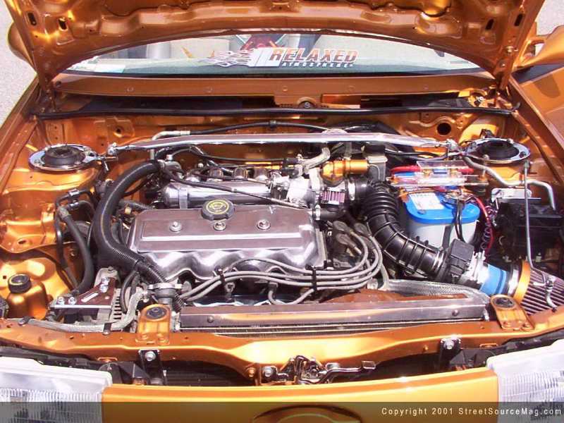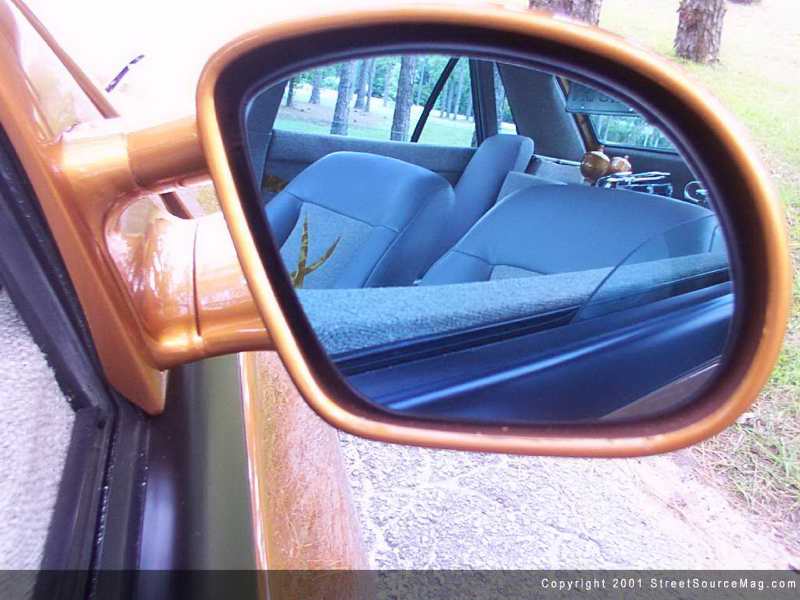 The tag was relocated to the back window and hangs on a hinged mount and a LED was also added for a 3rd brake light in the back window. Now that all the bodywork was complete and the body was prepped for paint, it was time to pick a color that Tommy would like. He decided to go with a Saffron Pearl color. While the car was being reassembled once the paint had dried, a set of '96 Honda Civic aftermarket sport mirrors were painted and bolted on. All of the paint and bodywork was performed at Cannons Auto Body in Wilmington, North Carolina.