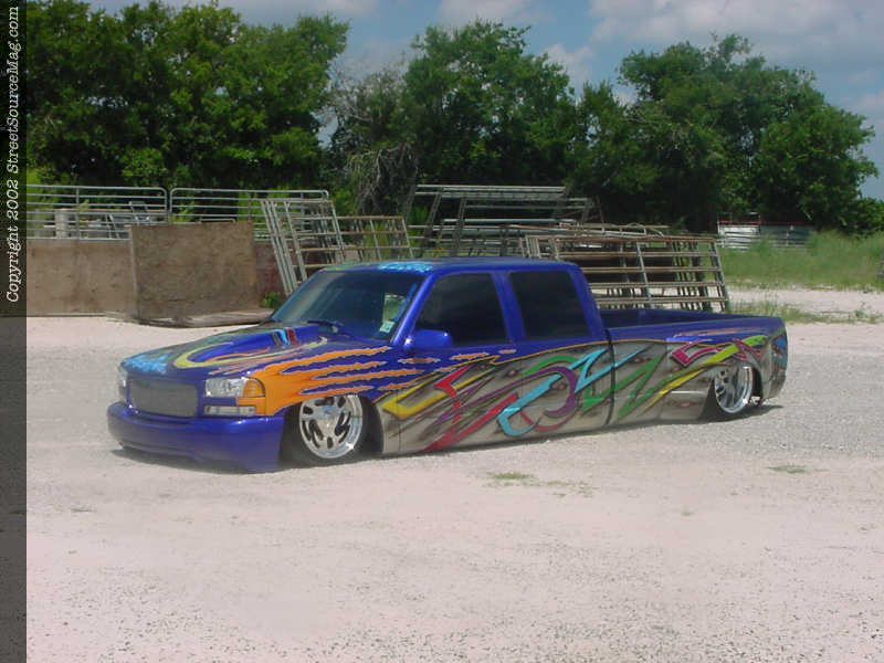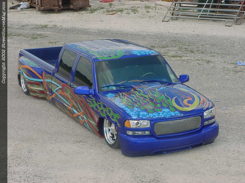 The colors of choice consist of: candy apple red, limetime, passion pearl, blue/purple mix, orion silver, magenta, oriental blue candy, cobalt blue candy, get'em green, prizamatique flake and like Jason says "etc, etc, etc". Now I have never seen a vehicle that just had way too many colors list but I guess there is a first for everything.