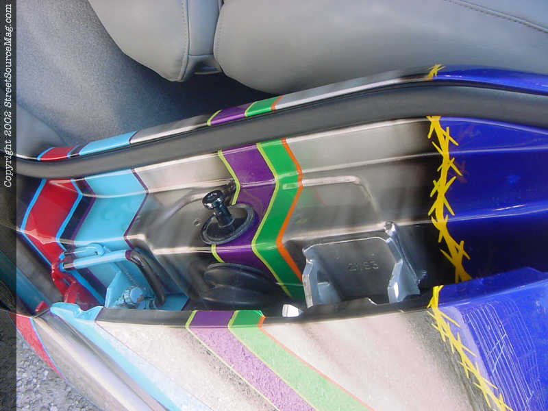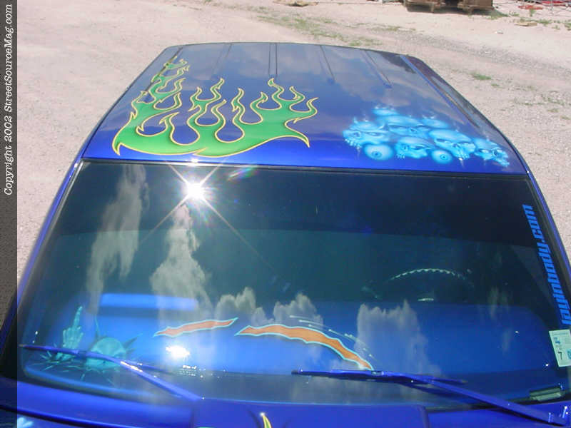 As for the interior it is just as rad as the exterior. Jason took the door panels, dash and even the headliner and fiber glassed them smooth. With those parts smoothed out, he then had the painters match the exterior graphics exactly with the interior.