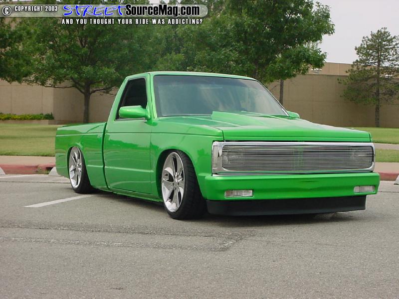 In the bed you will find that Daniel didn't cut any corners, he went all by spraying a green bed liner and added diamond plate accents matching his diamond plate bottle rack.   For the engine compartment Daniel pulled the engine and painted everything possible to match the exterior, what wasn't painted was dipped in shiny ass chrome, for the bling bling affect. Along with the paint and chrome Daniel added Cool-flex hoses and a chrome air cleaner cover.