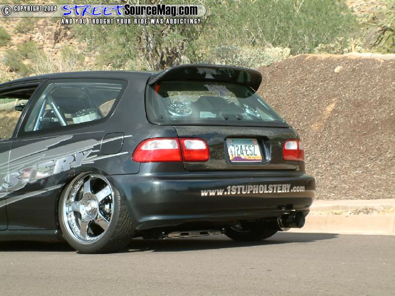 Helping drive all eyes on him, Jeff would begin working the body of his Civic. For starters the stock hood would be ditched in favor of a new VIS carbon fiber hood for a little weight reduction.   Next the stock headlights would be replaced by a set of one-piece headlights with black housing and dual angel eye. Matrix taillights replace the stock tails for an added Import look.