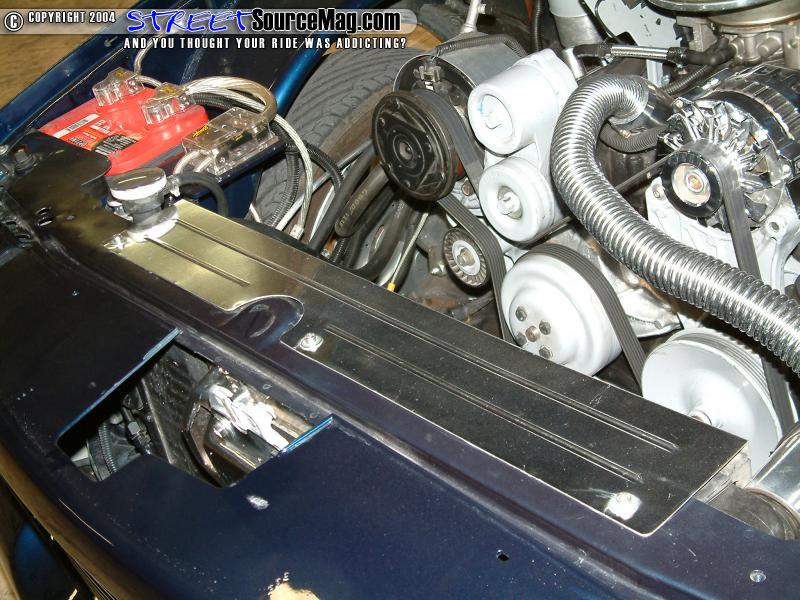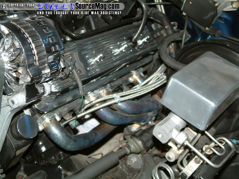 With Jim being involved in the scene for as long as he has one thing he’s learned is that you can’t leave any part of a build up untouched. Keeping true to the roots of custom build ups Jim would begin working on his 350 V8. For starters the stock fan would be replaced with an Electric cooling fan while a chrome alternator and powder coated engine pulleys find their new home.