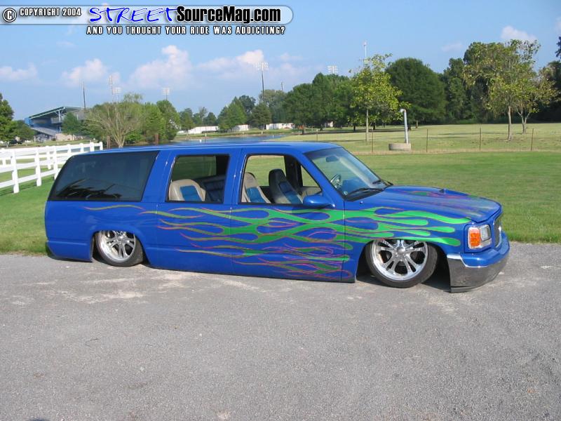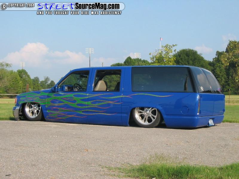 Jake would like to point out that he purchased his Suburban from a salvage yard with a front end hit. After 5 months of body and frame work it was ready for show. He’s been dragging it from coast to coast ever since he finished it including the long haul to California in it twice. He would like to thank his fellow Negative Camber club members, Katzkins, Boyd Coddington, all of his friends, all the people who helped with the build up of his Suburban, and most of all his wife who has been his co-pilot to every show. Keep your eyes open for this Suburban at a show near you, for a driven show truck its pretty damn impressive.