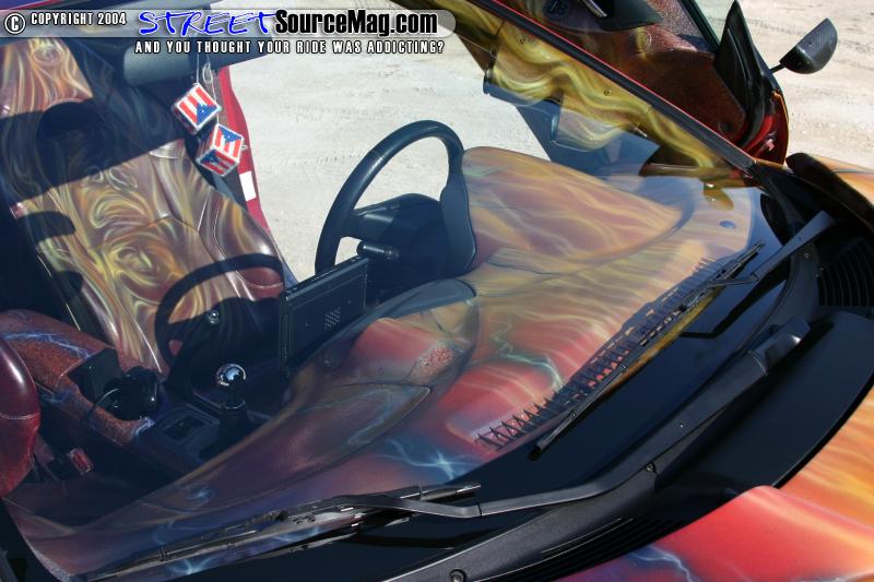 The paint on the interior matches the graphics and paint on the exterior of the car, which really brings the paint job to life. The car was also fitted with a Kenwood touch screen CD/DVD player.
