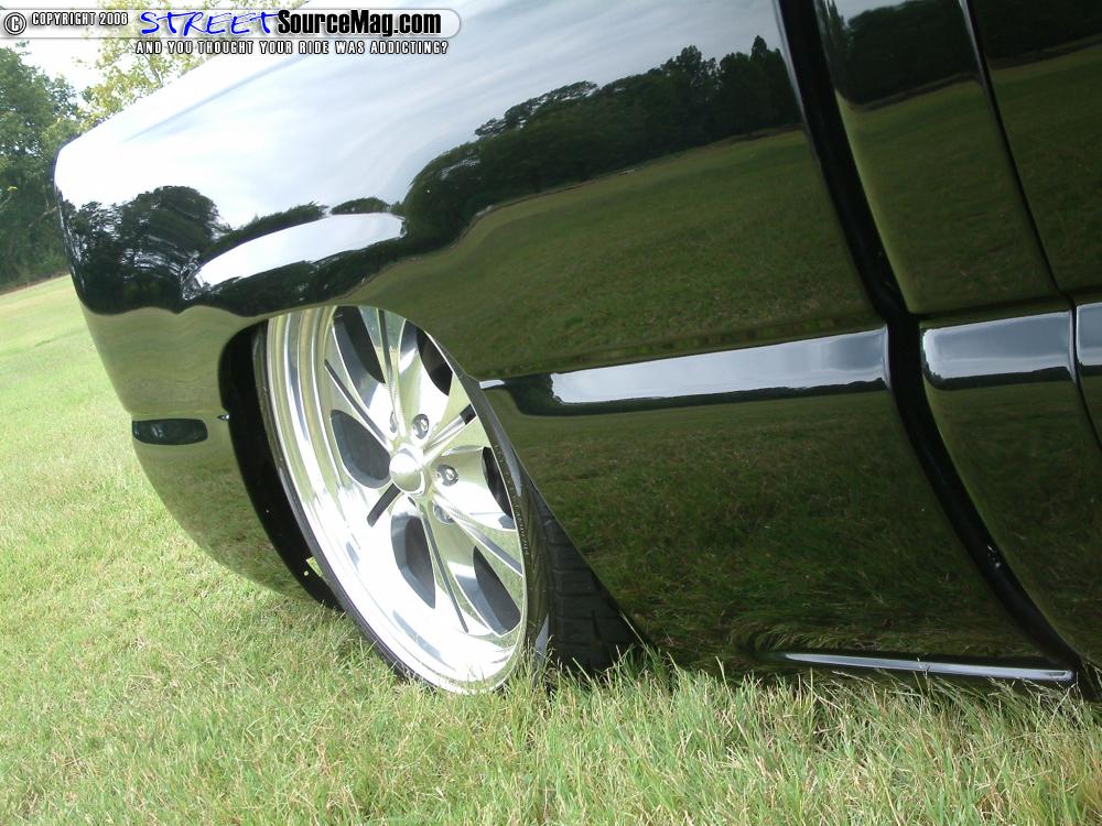 Sigler would now find his GMC tucking the 22x10 Colorado Custom Somerset wheels wrapped in 295/30 Toyo Proxes rubber. Working the exterior of the GMC, Sigler would rework a few panels. Starting up front a Stull billet insert would be installed along with shaving the door handles. Next Sigler would have the stake pockets shaved along with the tailgate handle.