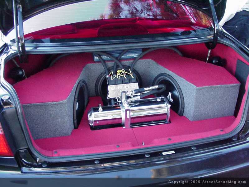 To help the clarity of the tunes, a Alpine PXA-H510 Digital sound processor EQ was then installed. With the EQ come the high quality speakers. For the high end, Tony decided to go with a set of 6 1/2 –inch Pioneer’s in door along with 6X9’s in rear. To keep up with the highs, the installation of 3 JL 12W6’s needed to happen. With a clean install, the use of red and gray tweed was again used to help match the car’s interior. The amps used to push the power to the speakers would be; Alpine MRV-F407 4ch amp, Soundstream class A6.0, and an Alpine MXE M350 1ch. The amps were installed into the rear floor for extra points while in competition.